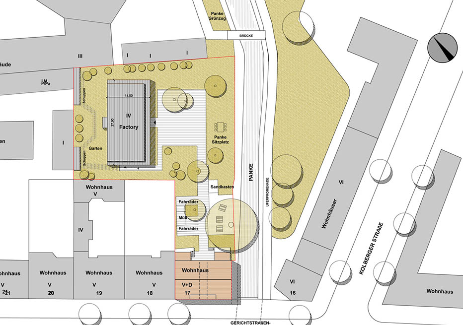 Das Grundstück des Gebäudes Gerichtsstraße 17 ist ca. 2.800 m² groß und hat eine lange Uferstrecke an der Panke. Die Lage an der Panke, einem kleinen Fluss, der in den letzten Jahren zu einem Grünzug ausgebaut wurde, ist einzigartig.