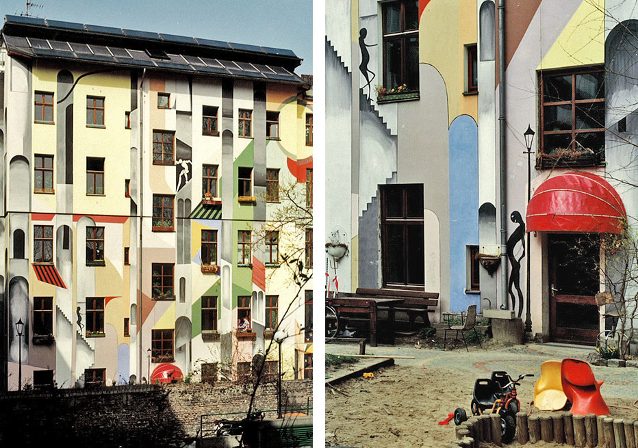 Die Jagowstraße liegt im Bezirk Mitte, im Ortsteil Moabit. Instandsetzung und Modernisierung eines Altbau-Mietshauses mit 2.200 m² Wohn- und Gewerbefläche, Dachausbau, Selbsthilfe u. Nutzerbeteiligung, ökologische Maßnahmen,, Thermische Solaranlage 60 m². Fassade Innenhof mit Wandbild Ausführung Wandbild: Michael Gölker (Entwurf), Tristan Hellwig und Eberhard Weible, 1984
