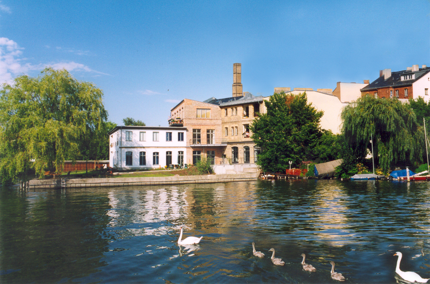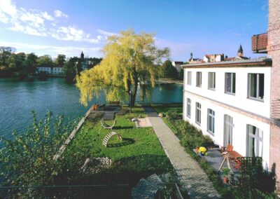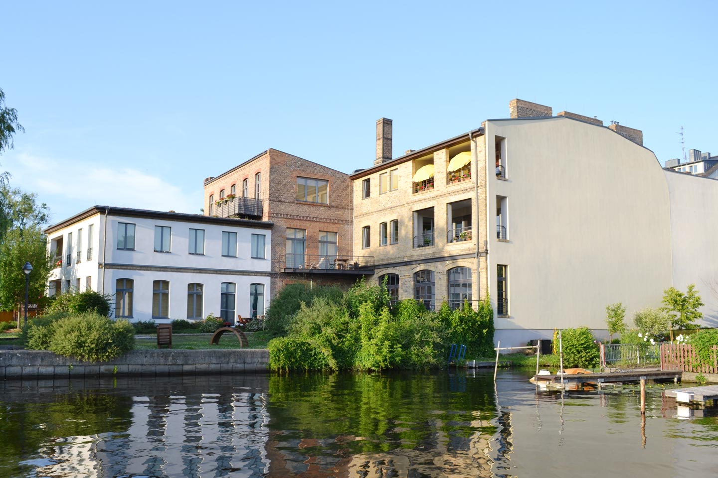 Die Lage am Wasser und der Innenhof bieten ein hohes Nutzungspotential. Die Patina der alten Gebäude, das Material und die Farben wirken sehr echt.