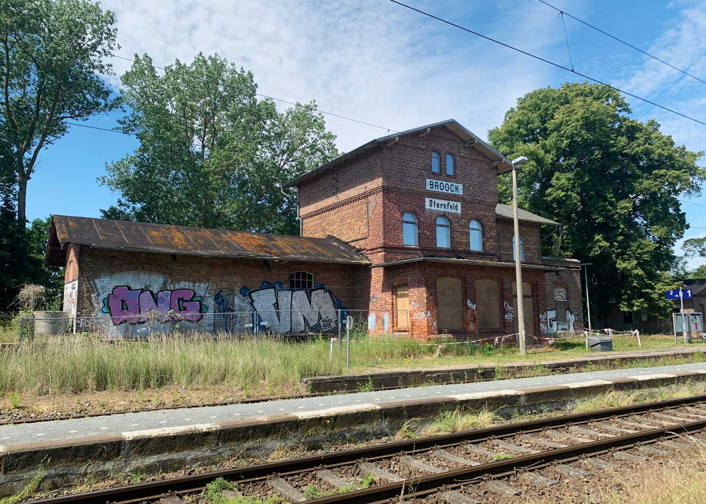 Auch für das Empfangsgebäude des Bahnhofs Sternfeld liegt eine Baugenehmigung vor. Von der Deutschen Bahn konnten wir den dazugehörigen Güterschuppen und angrenzende Erweiterungsflächen erwerben. Auf unser Betreiben hin erfolgte die Unterschutzstellung des Empfangsgebäudes inkl. Umfeld als Denkmal.